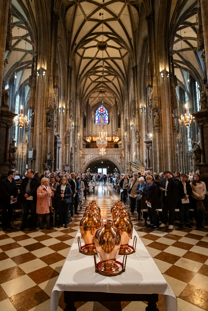 Am Montag in der Karwoche wird in der Erzdiözese Wien, im Stephansdom die Chrisam-Messe gefeiert. Dabei werden die drei heiligen Öle für unsere ganze Erzdiözese und für ein ganzes Jahr geweiht.
